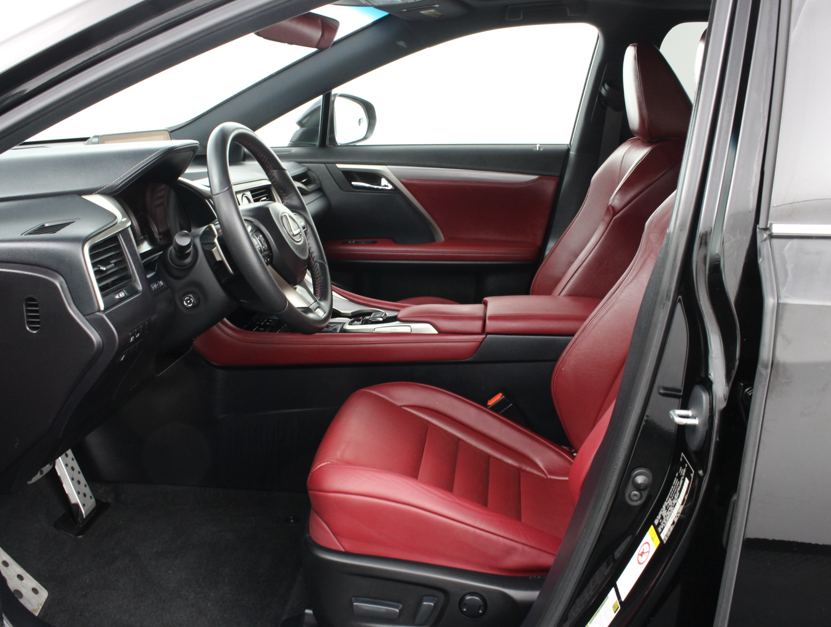 Recent Arrival! Priced below KBB Fair Purchase Price! CARFAX One-Owner. BBB Accredited A+, We Accept Trade-Ins, Hablamos Español, FINANCING AVAILABLE!!, Lane Departure Warning, Front Collision Warning, Blind Spot Monitoring, Rear Collision Warning, AWD, Rioja Red Leather, ABS brakes, Air Conditioning, Alloy wheels, AM/FM radio: SiriusXM, Auto-dimming Rear-View mirror, Automatic temperature control, Backup Monitor, Distance pacing cruise control: All-Speed Dynamic Radar Cruise Control, Dual front impact airbags, Dual front side impact airbags, Electronic Stability Control, Front dual zone A/C, Front fog lights, Fully automatic headlights, Heated & Ventilated Front Bucket Seats, Knee airbag, Low tire pressure warning, Memory seat, Occupant sensing airbag, Power door mirrors, Power driver seat, Power Liftgate, Power passenger seat, Power steering, Power Tilt & Slide Moonroof, Power windows, Radio: AM/FM/CD Lexus Display Audio, Spoiler, Steering wheel mounted audio controls, Traction control, Turn signal indicator mirrors, Wheels: 20 x 8 F Sport w/Dark Metallic Finish. Obsidian 2017 Lexus RX 350 F Sport AWD 3.5L V6 DOHC 24V